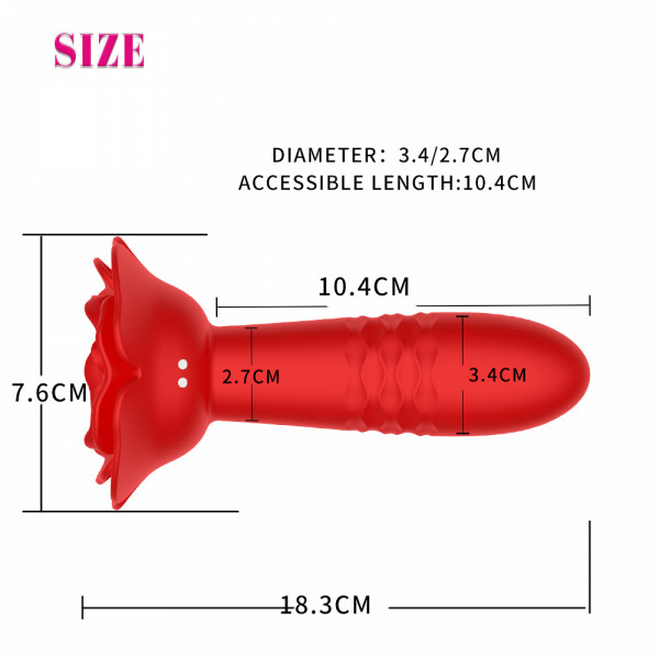 Пробка с вибрацией и возвратно-поступательными движениями "Rose Anal Plug" на дистанционном управлении, красная