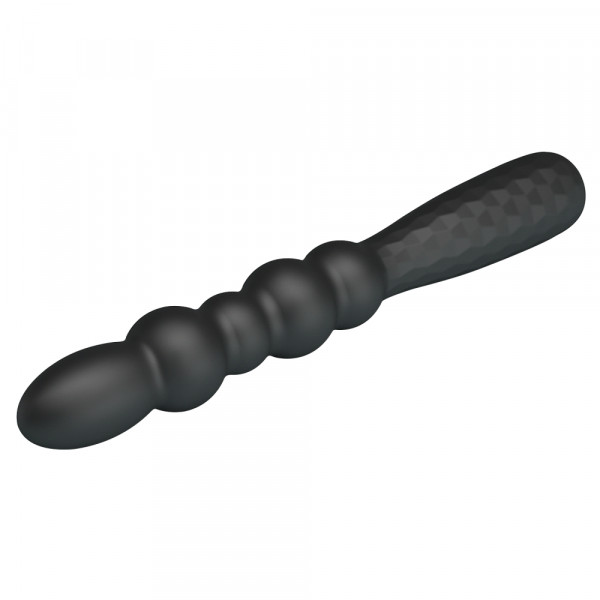Выполнен вибратор в виде рельефного ствола из 5 шариков различного диаметра и удобной рельефной противоскользящей рукояти. Минимальный размер и диаметр девайса идеальны, даже для тех, кто впервые держит в руках анальную игрушку!