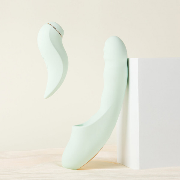 Вибратор-пульсатор + съемный вакуумный стимулятор "BeYourLover Fatima" с подогревом, мята